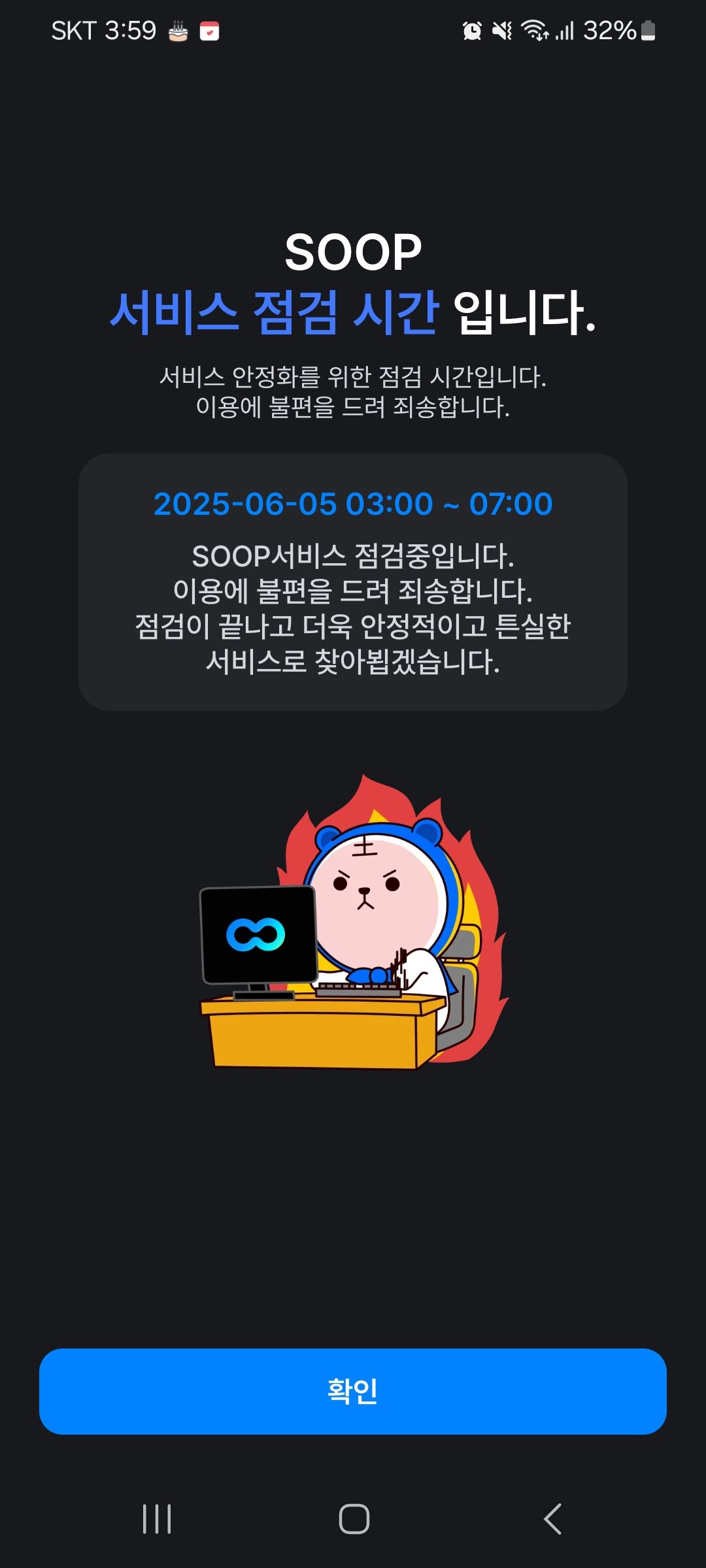 그냥 서비스 점검중인데 어째서인지 숲에 들어와진 상황