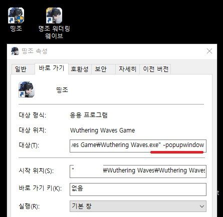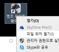 명조 아이콘 우클릭 - 파일위치 열기