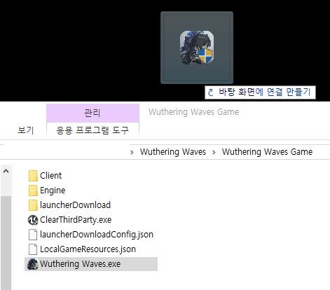 3. Wuthering Waves.exe를 우클릭해서 바탕화면에 바로가기를 만든다.
