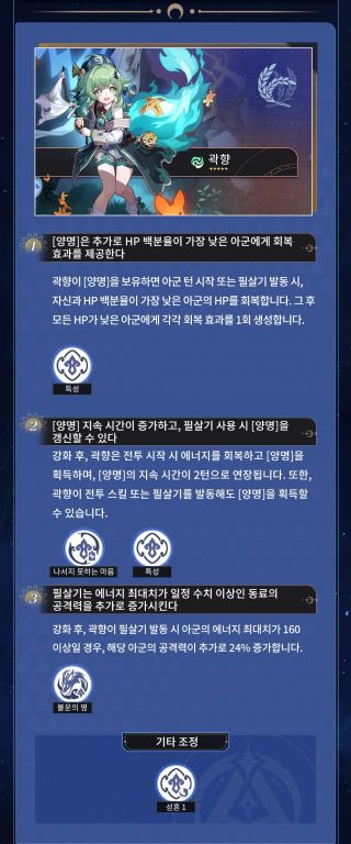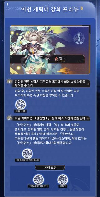 캐릭터 강화 후 스킬, 행적 및 성혼의 효과에 변화가 있을 수 있습니다.